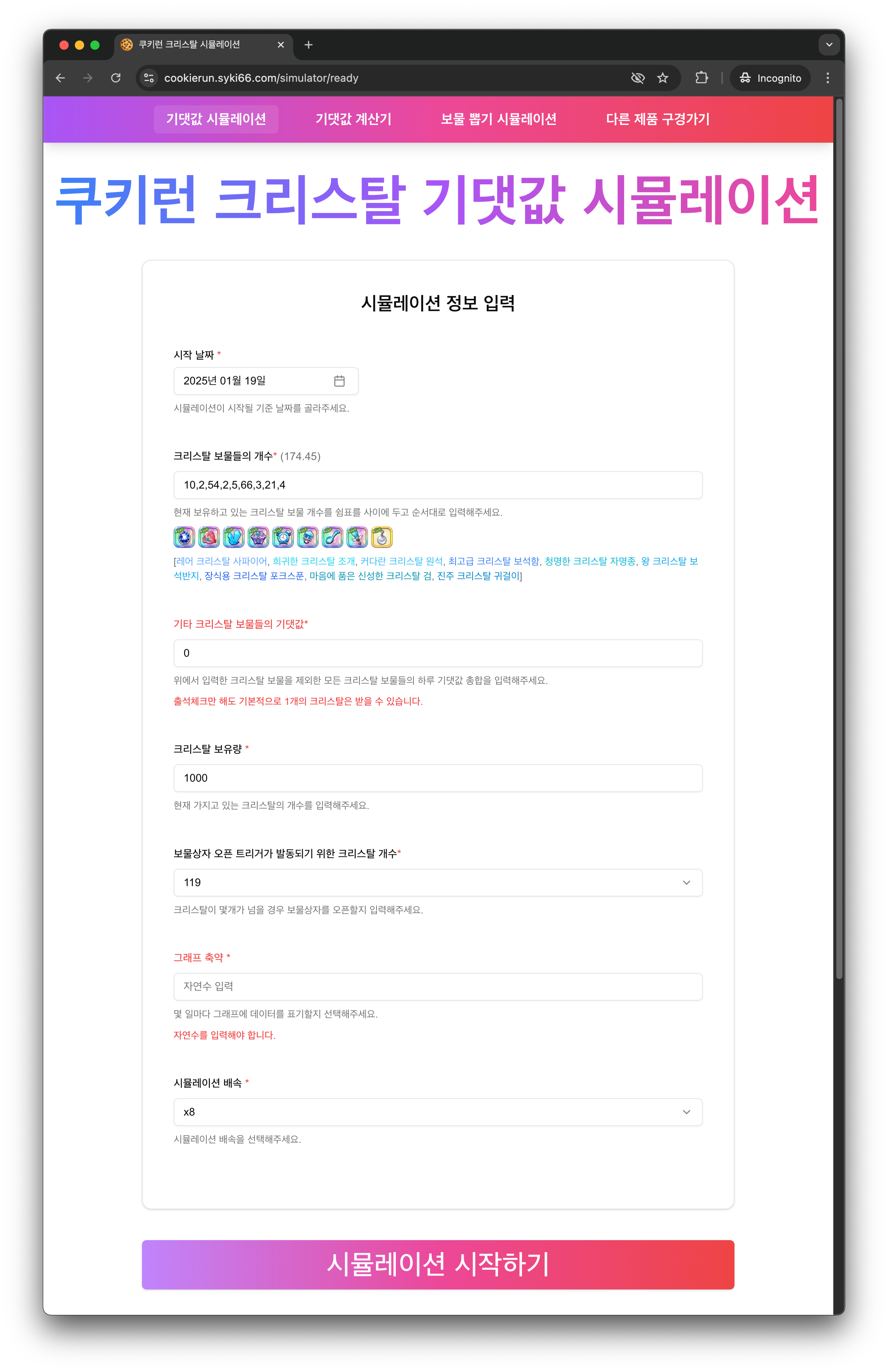 • 크리스탈 기댓값 시뮬레이션 페이지