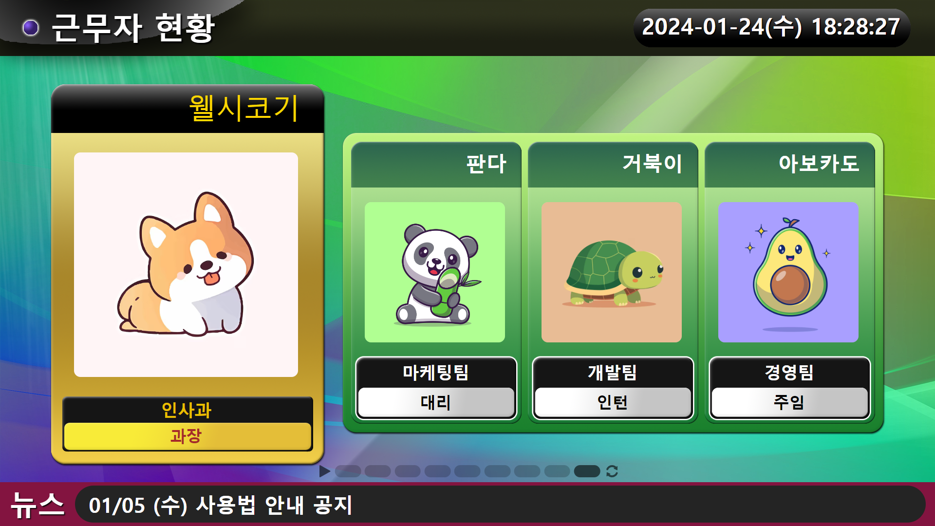 • 여러 유형의 현황판 페이지 구현