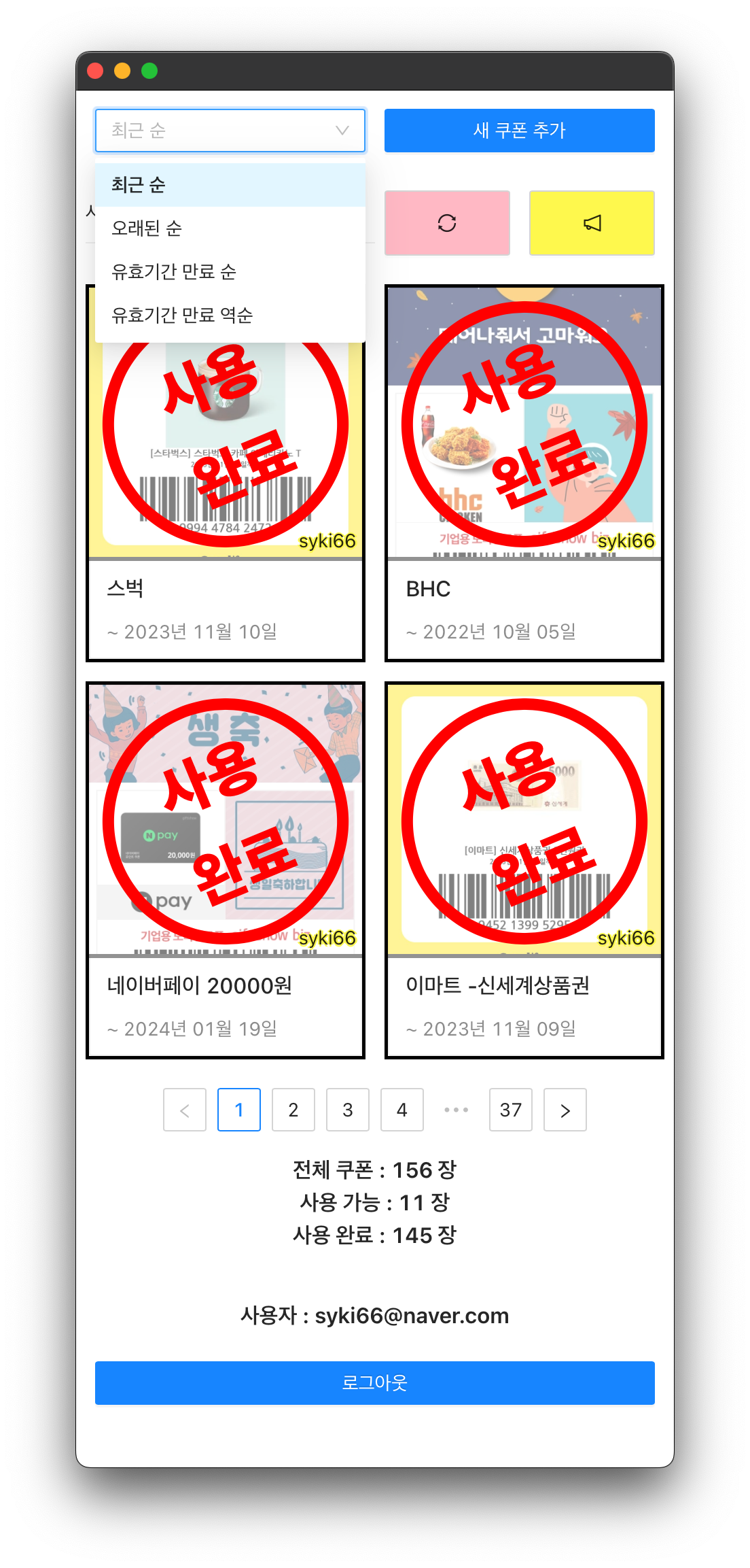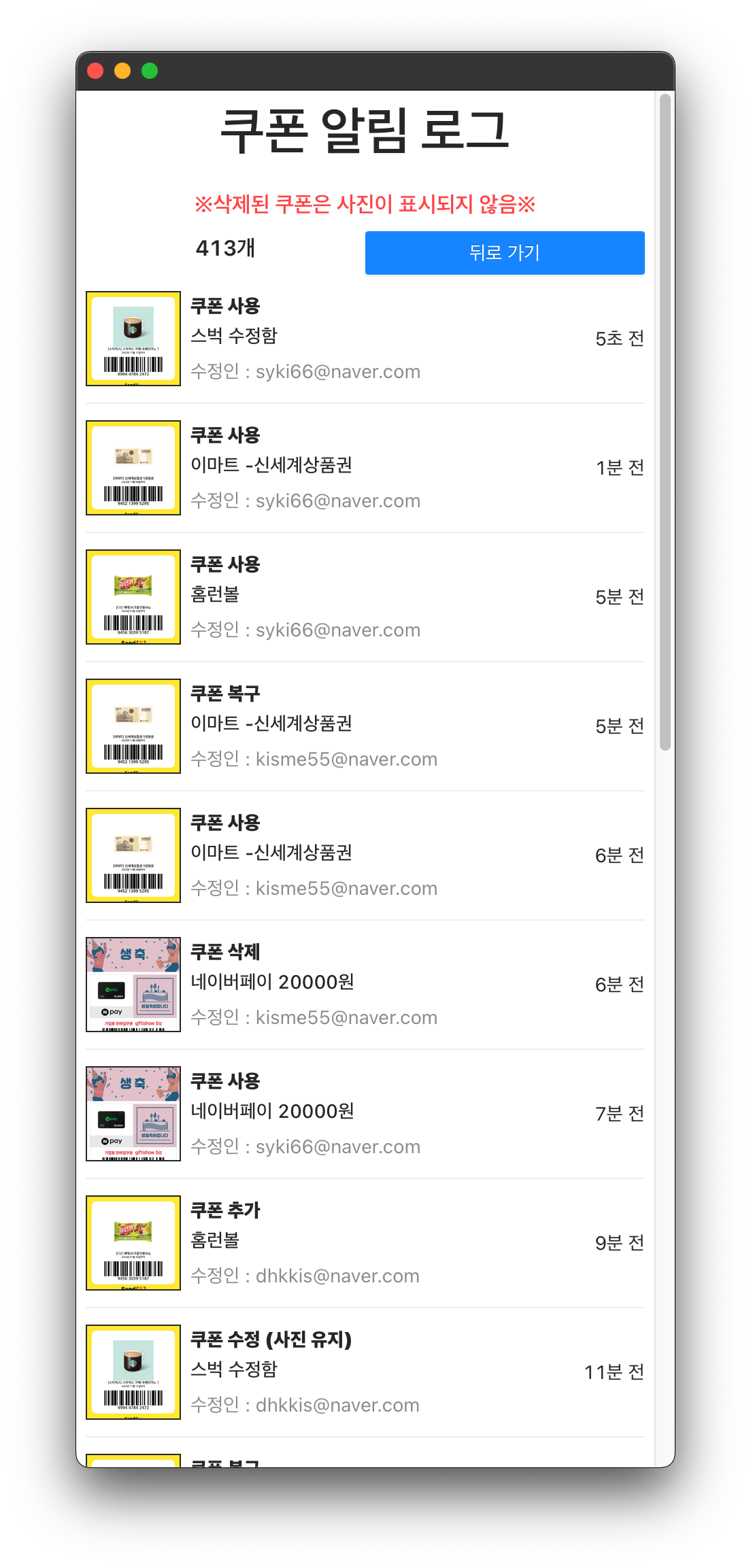 가족 또는 지인과 함께 쿠폰을 사용하고 관리할 수 있도록 개발된 PWA 기반 공동 쿠폰 관리 웹앱을 제작했습니다.