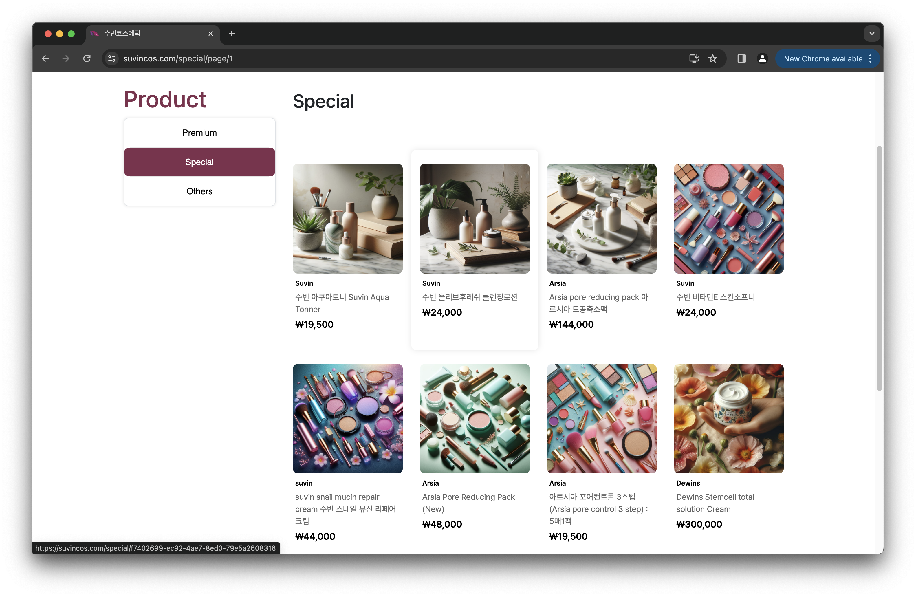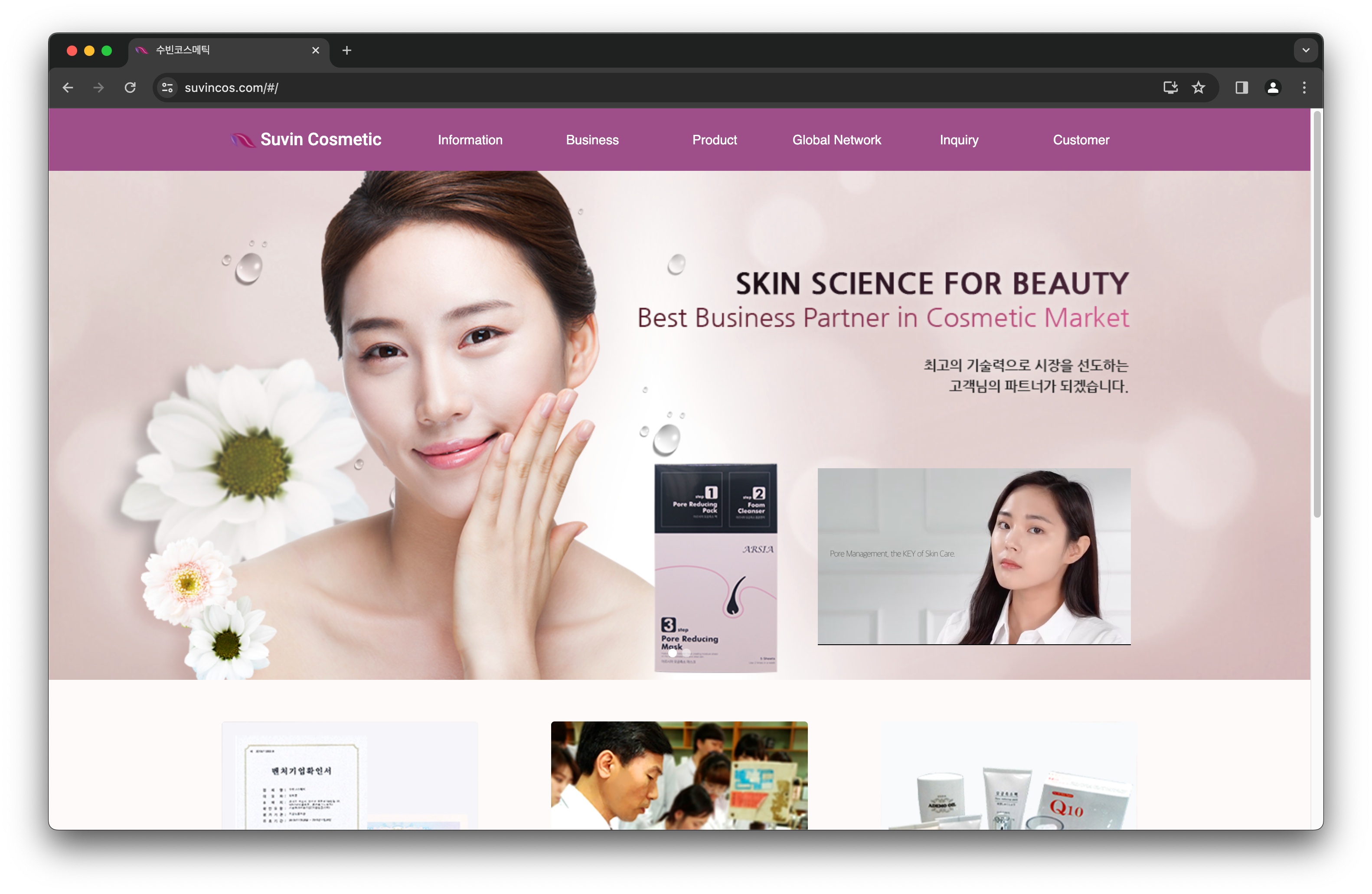 화장품 회사인 수빈 코스메틱의 소개 및 홍보용 웹사이트를 개발했습니다.